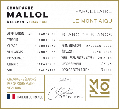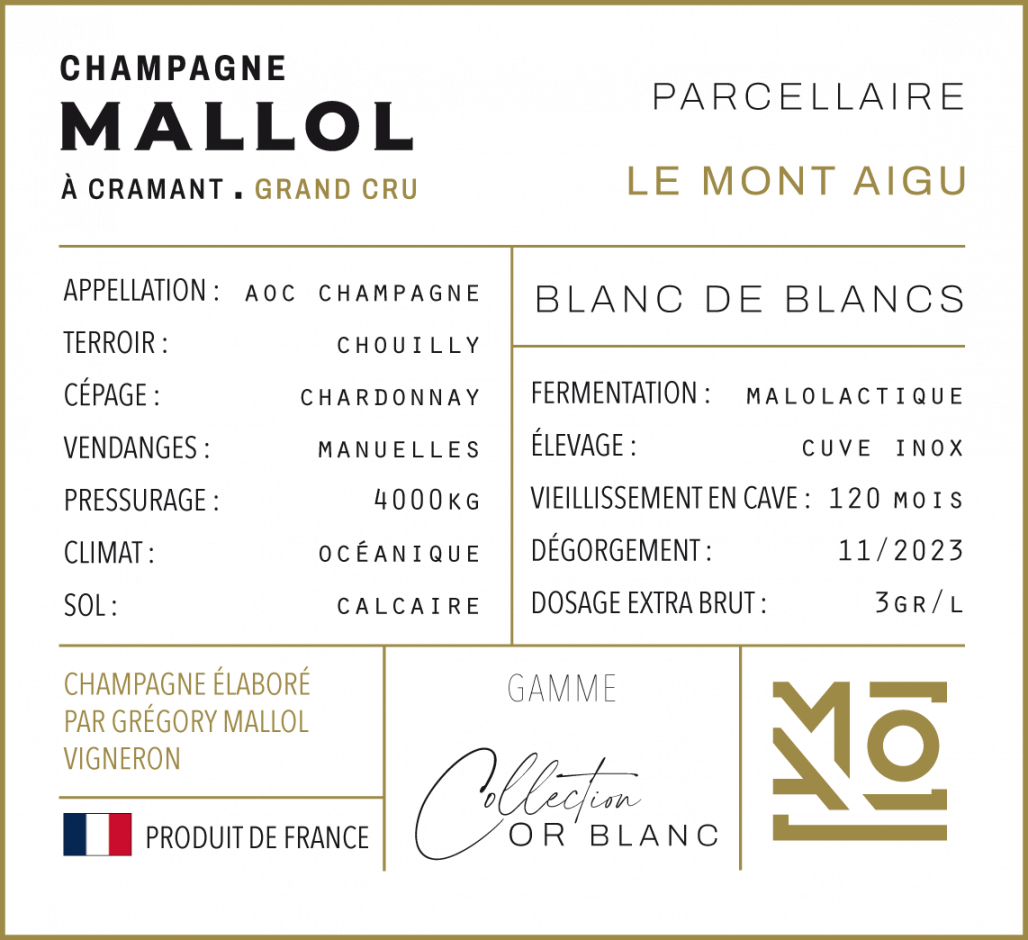 La parcelle du Mont Aigu est un joyau rare et précieux, dont la production est limitée. Chaque bouteille de champagne issu de cette parcelle est le fruit d'un travail minutieux et d'un long vieillissement en cave de 96 mois. Ce champagne d'exception, réservé aux amateurs éclairés qui recherchent l'excellence et l'authenticité. -
